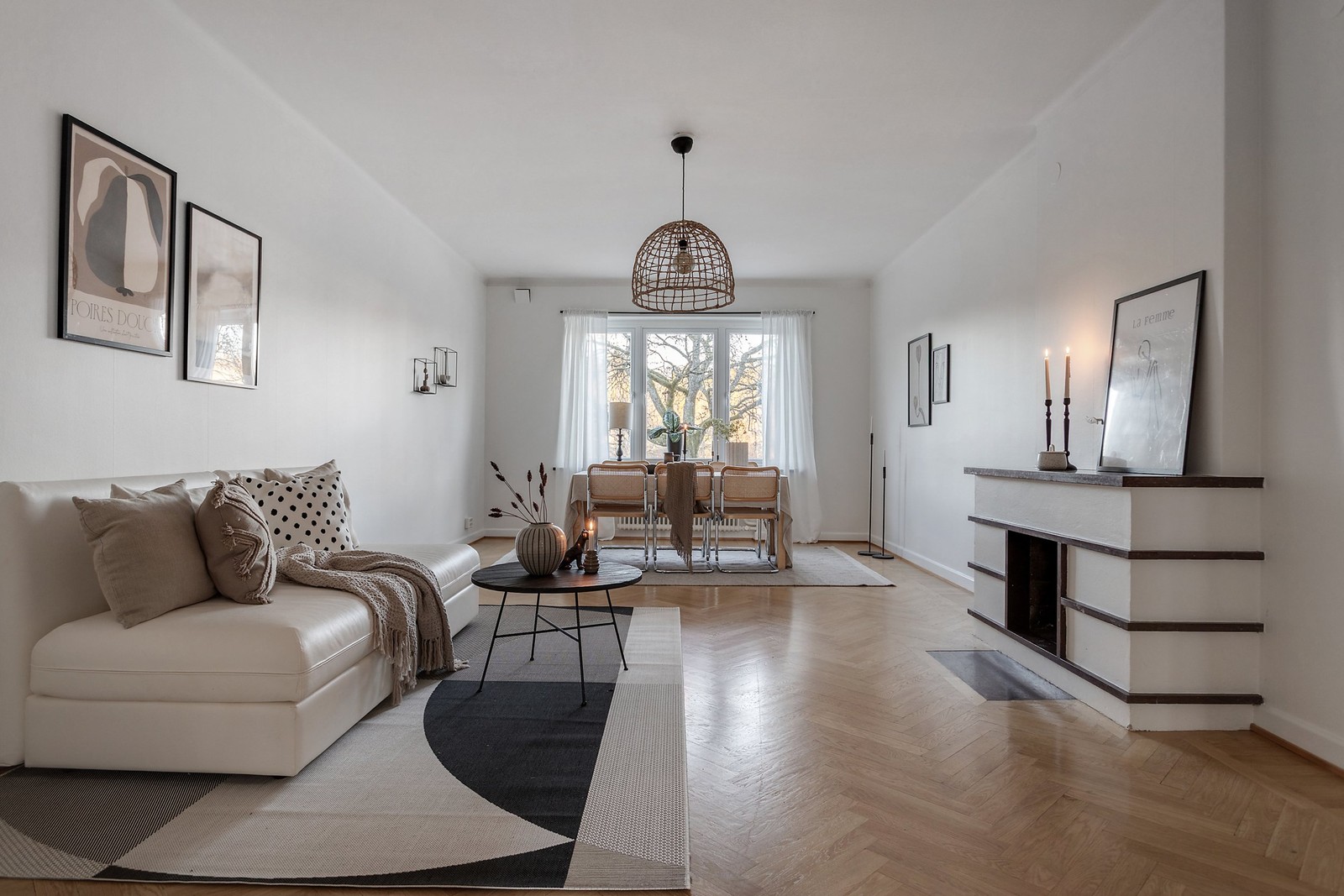 Tilltalande trea en trappa upp i huset och med ett läge utöver det vanliga. Bo i charmigt bevarad och modernt uppdaterad bostad med ursprung från 1930-talet och kanalstråket på absolut första parkett. Ljus genomgångsbostad med högt i tak, rum i fil, eldstad (ej i bruk), platsbyggd förvaring och balkong med gårdsläge. Renoverat kök och helkaklat badrum med plats och förberett för tvättmaskin. Lägg därutöver till detaljer som åtråvärd fiskbensparkett, radiatorer i gjutgärn och fönsterbänkar i sten.