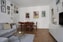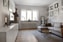 Rymligt vardagsrum med stora fönster. Stavparkett och målade väggar.