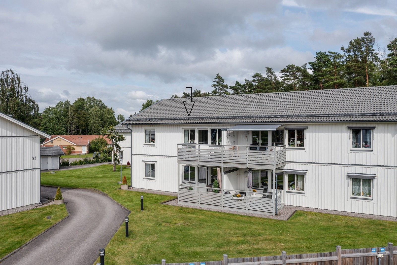 Stor och insynsskyddad balkong i sydvästläge.