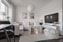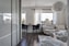 Trivsamt och välplanerat vardagsrum som bjuder på ett härligt ljusinsläpp från stora fönsterpartier. Rummet präglas av en modern och neutral färgsättning med ljusa väggar och mörkare golv som skapar en fin kontrast och en ombonad känsla. Sovalkov som är separerat från vardagsrummet genom en uppbyggd vägg. Förvaring i form av en skjutdörrsgarderob.