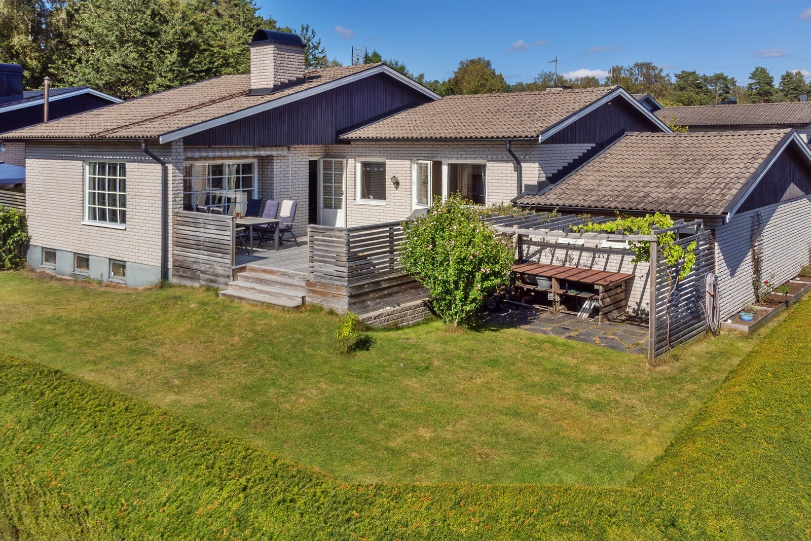 Huset på två våningar erbjuder ljusa och inbjudande sällskapsrum, ett på varje våning – båda med öppen spis som skapar en varm och mysig atmosfär för hela familjen. Här finns gott om plats för både vardagsliv och festliga tillfällen. Planlösningen ger möjlighet till flera sovrum, vilket gör att huset enkelt kan anpassas efter familjens behov. Stor altan i söderläge med en pergola för utekök eller arbetsbänk i anslutning.