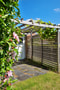 Härlig och omslutande trädgård med en stor altan i söderläge. I anslutning till altanen finns en pergola där vinrankan växer tjusigt och här passar ypperligt för ett utekök eller planteringsbord.