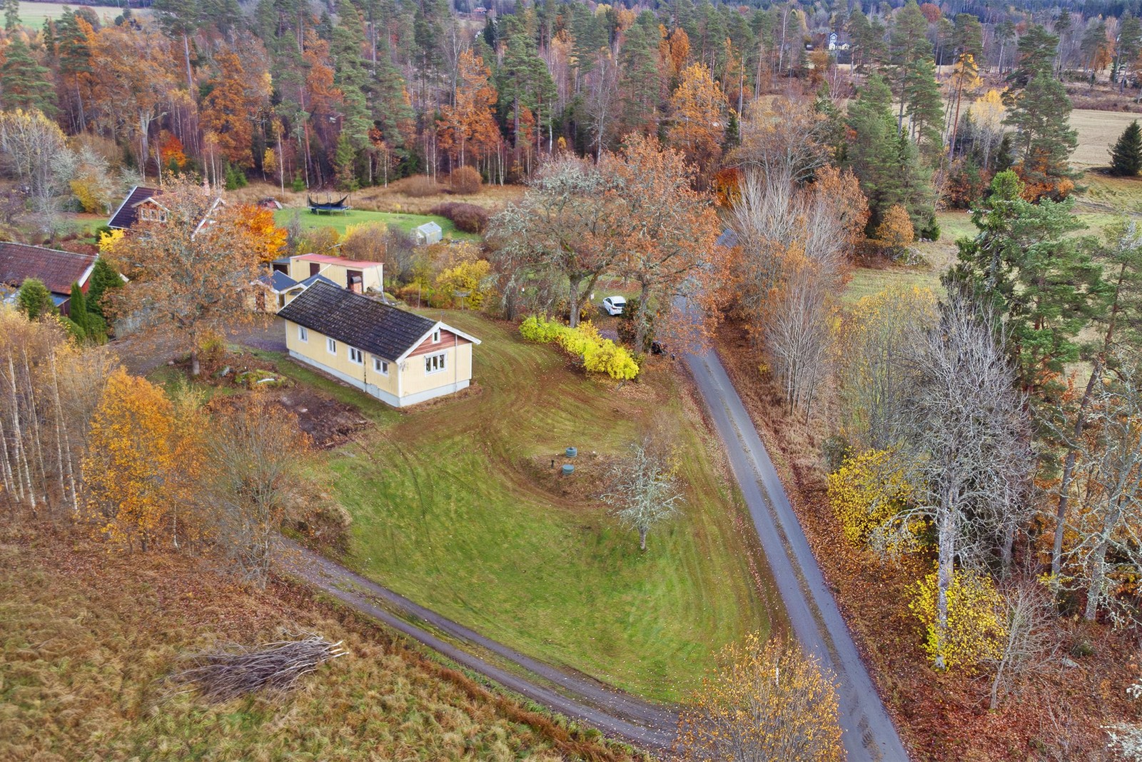 Enplanshus på stor och naturnära tomt. Braskamin. Två extra uthus samt vedförråd. Nyare avlopp med minireningsverk.