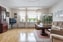 Vardagsrummet är väl tilltaget och erbjuder plats för den stora soffgruppen. Även TV-möbel eller annat möblemang inryms. Parkettgolv och ljusa tapeter.