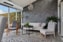 Stora fönsterpartier och utgången mot vinterträdgården ger ett fint ljusinsläpp och suddar ut gränsen mellan inne och ute. Den stilfulla fondväggen i sten tillför karaktär och ger rummet en modern och exklusiv känsla, medan det genomgående trägolvet skapar värme och harmoni.