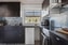 Köket har en större öppning mot vardagsrummet och även genomgång till hallen som skapar ett fantastiskt flöde och skapar en känsla av rymd och sammanhang mellan rummen. Skåpsluckorna har en vacker mörk färg och svart bänkskiva med kakel ovan i flera blå nyanser. Köket är utrustat med diskmaskin, spis, fläkt, kyl och frys.