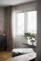 Vardagsrummet är ljust och härligt med stora fönsterpartier i västerläge och har access till en rymlig balkong i samma väderstreck. Vacker fiskbensparkett pryder golvet och väggarna är tapetserade. I anslutning ligger master bedroom, även det inrett med tapetserade väggar samt laminatgolv. Här erbjuds klädförvaring i flera garderober.