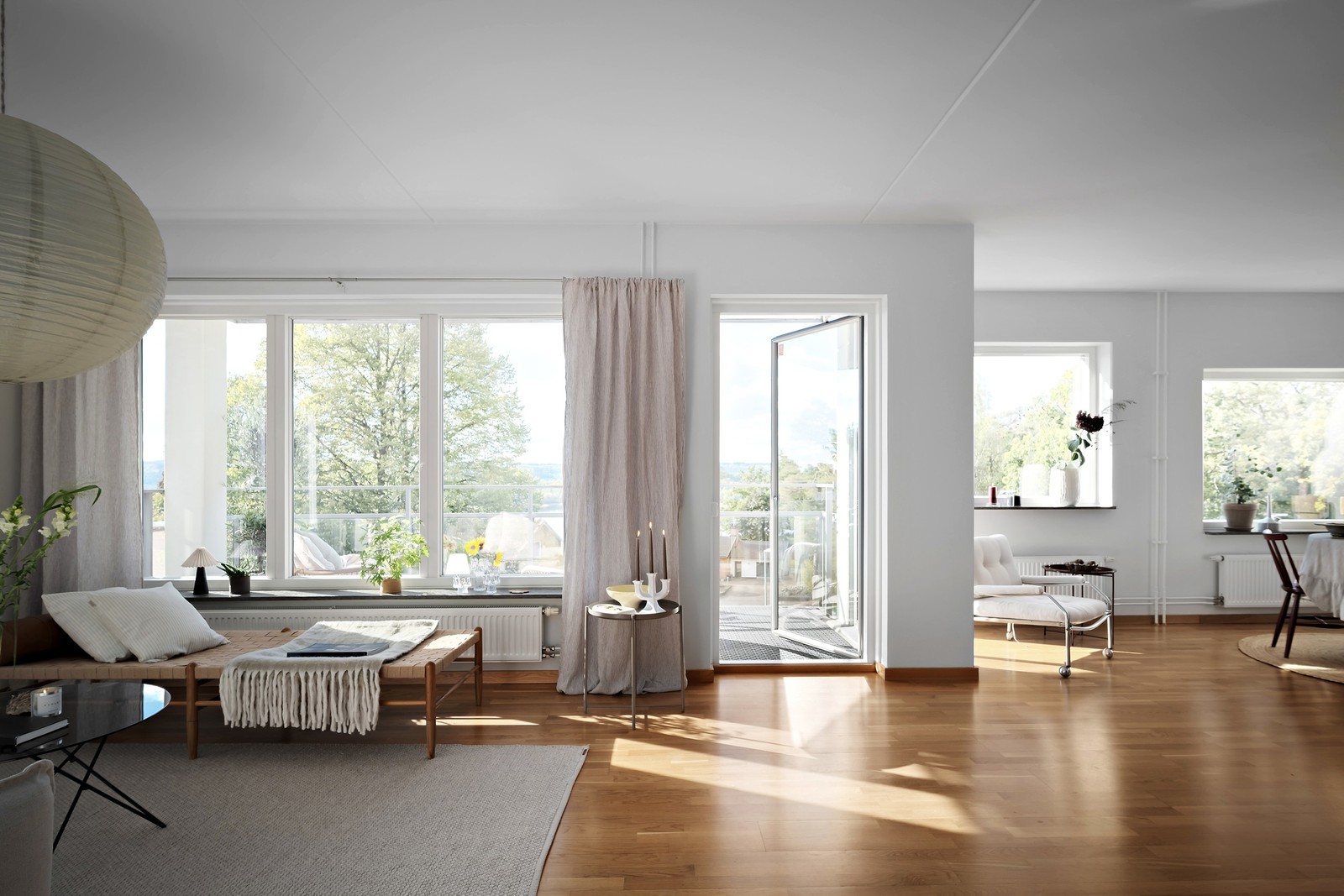 Stilren tvåa med sjöutsikt, kvällssol och balkong i västerläge