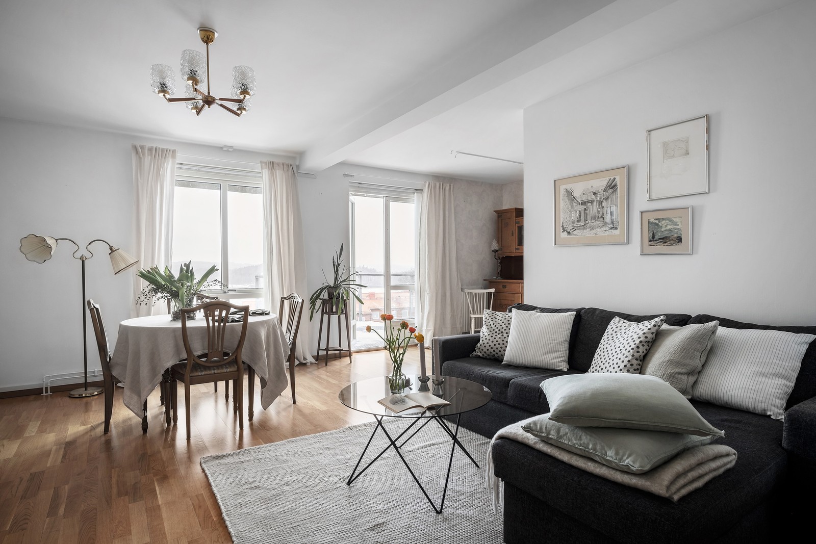 Lägenheten erbjuder en genomtänkt planlösning med trivsamma sällskapsytor och ett härligt ljusinsläpp. Vardagsrummet bjuder in till både avkoppling och umgänge, med stora fönsterpartier som ramar in den fantastiska vyn.