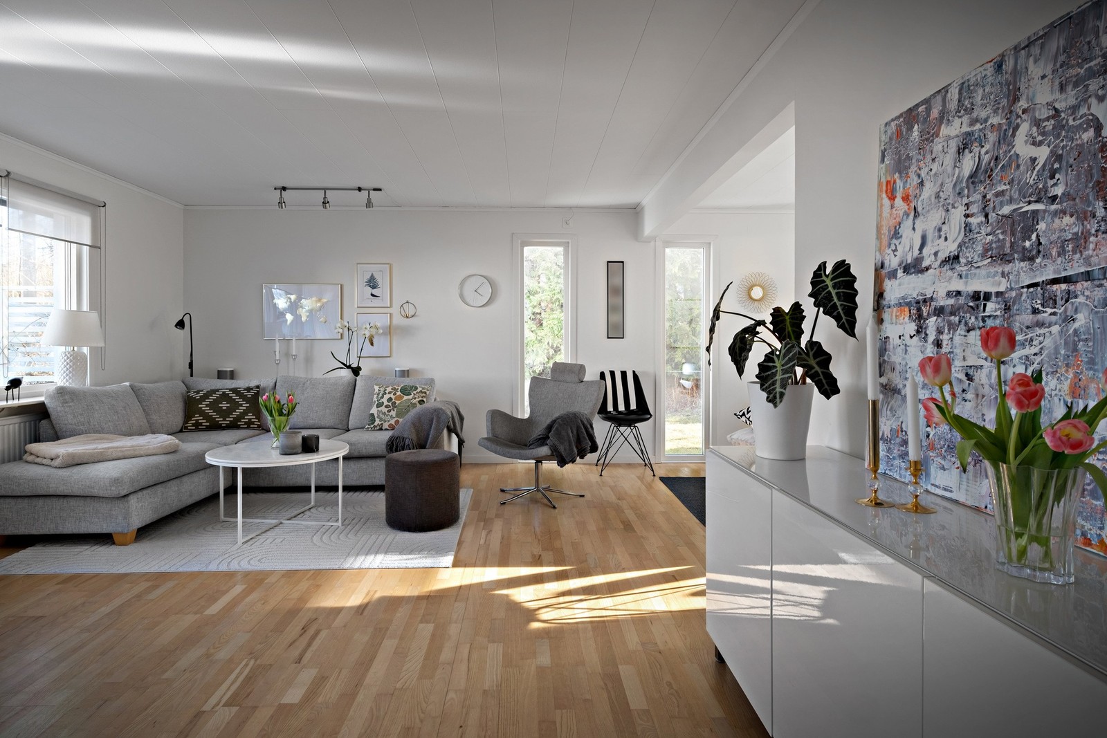 De sociala ytorna är generösa och ljusa där vardagsrum och matplats binds samman i en öppen och trivsam disposition. Stora fönsterpartier ger ett fint ljusinsläpp och skapar en luftig atmosfär i rummet. Braskaminen blir en naturlig samlingspunkt under årets kallare månader och bidrar med både värme och stämning. Från både matplats och vardagsrum nås den stora, privata altanen i soligt västerläge – en härlig plats för avkoppling och umgänge under årets varmare månader.