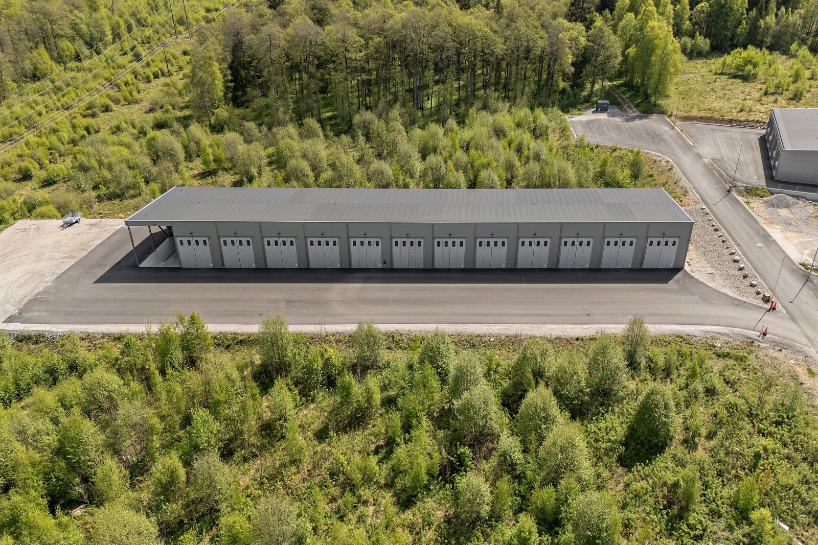 Utvändigt finns goda uppställningsytor med asfalterad infart. En ypperlig lösning för dig som söker ett modernt, tryggt och mångsidigt utrymme – oavsett om det handlar om hobby, företagande, förvaring eller fritidsintresse.