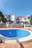 Pool och poolsängar framför en modern medelhavsvilla - Bjurfors