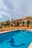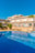 Pool och poolsängar framför en modern medelhavsvilla - Bjurfors