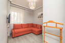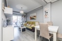 Hjärtat i bostaden är det ljusa vardagsrummet med matsal, en trivsam och mångsidig yta, perfekt både för avkoppling och sociala sammankomster. Härifrån når du en spektakulär solig terrass, perfekt för att njuta av morgonkaffet, äta utomhus eller ha trevliga grillkvällar med vänner och familj medan du njuter av havsbrisen.