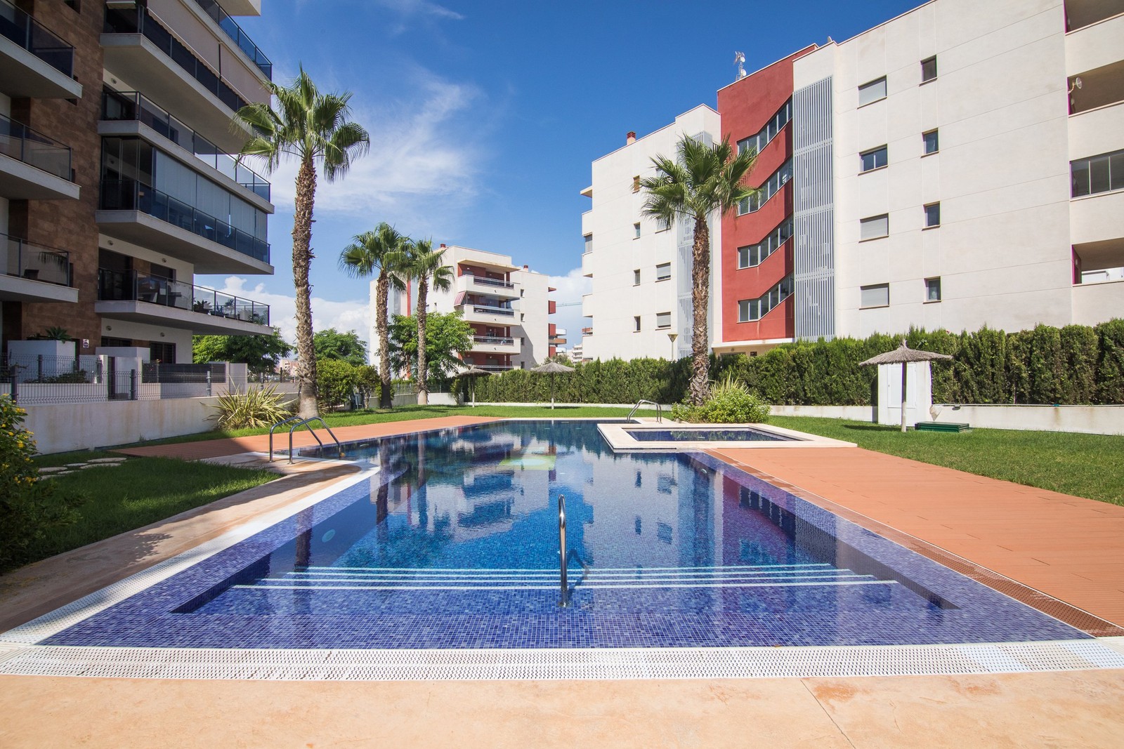 Modern lägenhet i Arenales del Sol, mycket nära stranden i en privat urbanisering med pool.