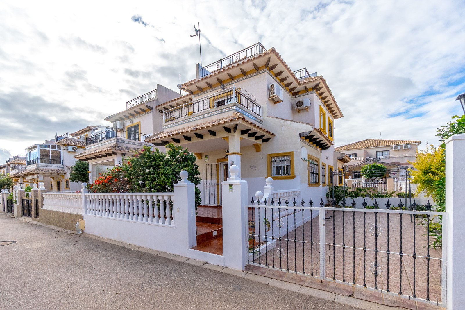 Detta charmiga quad-hus ligger i ett lugnt och trivsamt område i La Regia, Cabo Roig, och erbjuder en perfekt kombination av komfort, generösa ytor och närhet till ett brett utbud av bekvämligheter och fritidsaktiviteter. Bostaden är fördelad över två våningar och har en rymlig markterrass med gott om plats för utomhusmåltider, avkoppling samt en stor privat parkeringsyta direkt på tomten.