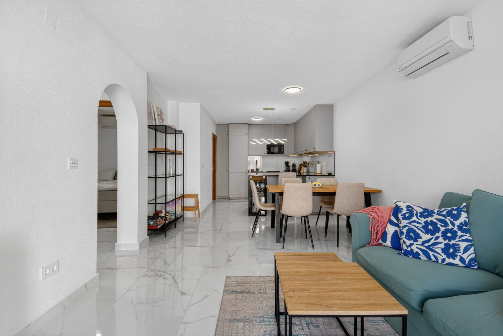 Välkommen till denna stilfullt renoverade bostad belägen på andra våningen i attraktiva Dehesa de Campoamor, ett område som förenar lugn med ett levande utbud av service och nöjen. Här bor du med närhet till charmiga restauranger, mysiga caféer, välsorterade matbutiker och den inbjudande småbåtshamnen, där du kan njuta av både havsbris och vackra promenadstråk. De närliggande stränderna lockar med gyllene sand och kristallklart vatten, och området erbjuder även golfbanor, sportanläggningar och bekvämligheter året runt.