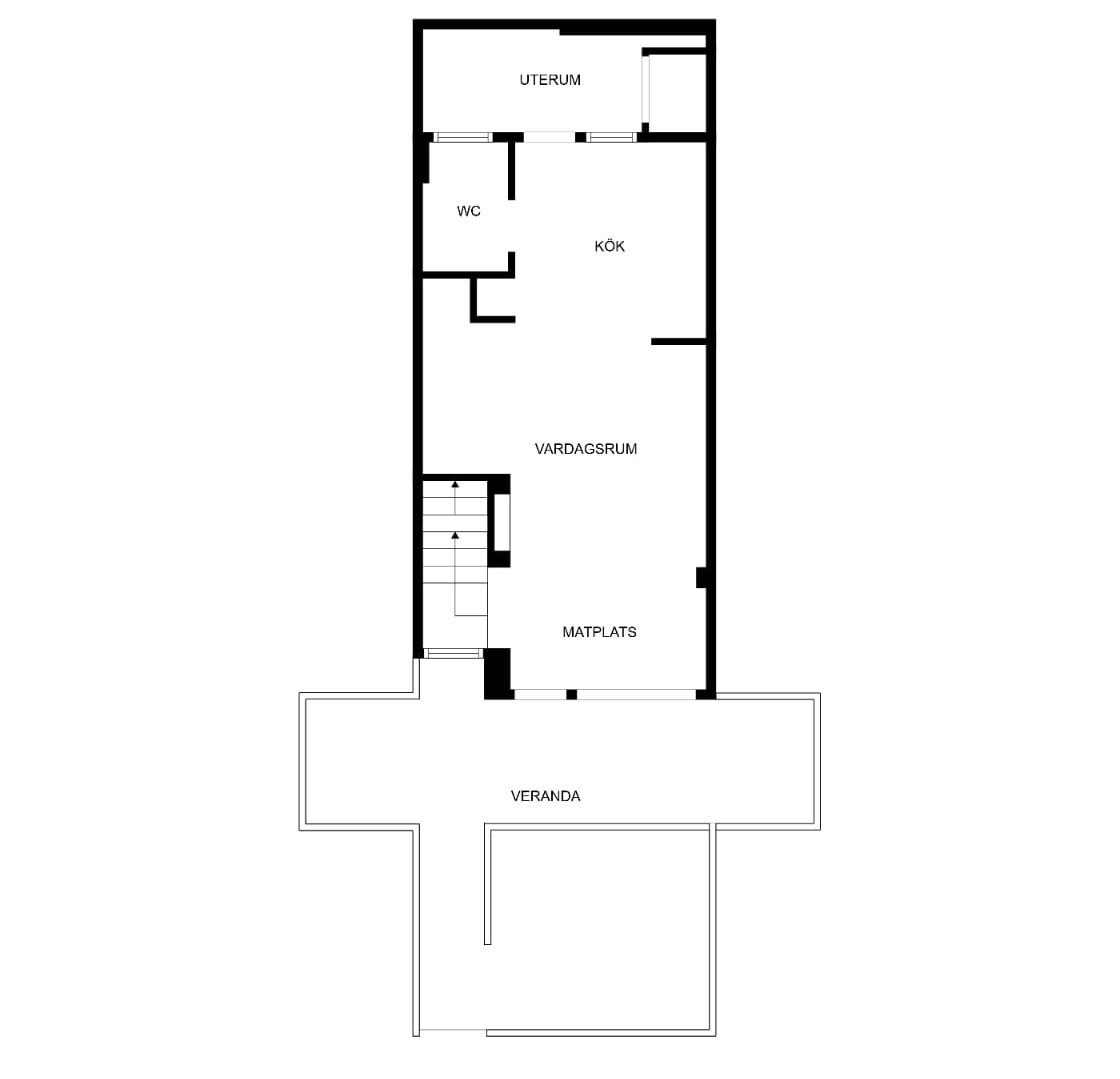 Bostaden har en modern och välplanerad planlösning med en öppen yta mellan vardagsrummet och det stilrena köket, vilket skapar en trivsam atmosfär för både avkoppling och socialt umgänge. Här finns även plats för ett matbord och en praktisk köksö med extra förvaring. Från köket leder en elegant glasdörr ut till en charmig patio, där du hittar tvättmaskinen och en uppfriskande utedusch. På entréplanet finns även en praktisk gästtoalett.