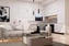 Bottenvåningen har en öppen planlösning mellan det moderna köket och vardagsrummet, ett rymligt sovrum med inbyggd garderob och ett badrum. Vardagsrummet har direkt tillgång till trädgården och poolområdet genom stora glasdörrar, som också släpper in mycket naturligt ljus.