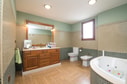 Fastigheten drar nytta av sin imponerande design och funktioner, men har också en rad moderna bekvämligheter. Utrustad med luftkonditionering och värme i hela bostaden kan du njuta av en behaglig miljö året runt. Öppen spisen i vardagsrummet tillför en touch av värme, perfekt för kyligare kvällar, och skapar en mysig atmosfär som inbjuder till avkoppling. Huvudentrén är förstärkt med en säkerhetsdörr, vilket ger en hög nivå av säkerhet och trygghet för dig och din familj.