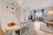 Vardagsrummet är utformat i öppen planlösning och är märkbart rymligare än många andra bostäder i urbanisationen, vilket ger en luftig och harmonisk känsla. Här finns gott om plats för både soffgrupp och matbord, vilket gör rummet perfekt för såväl avkoppling som sociala tillställningar.