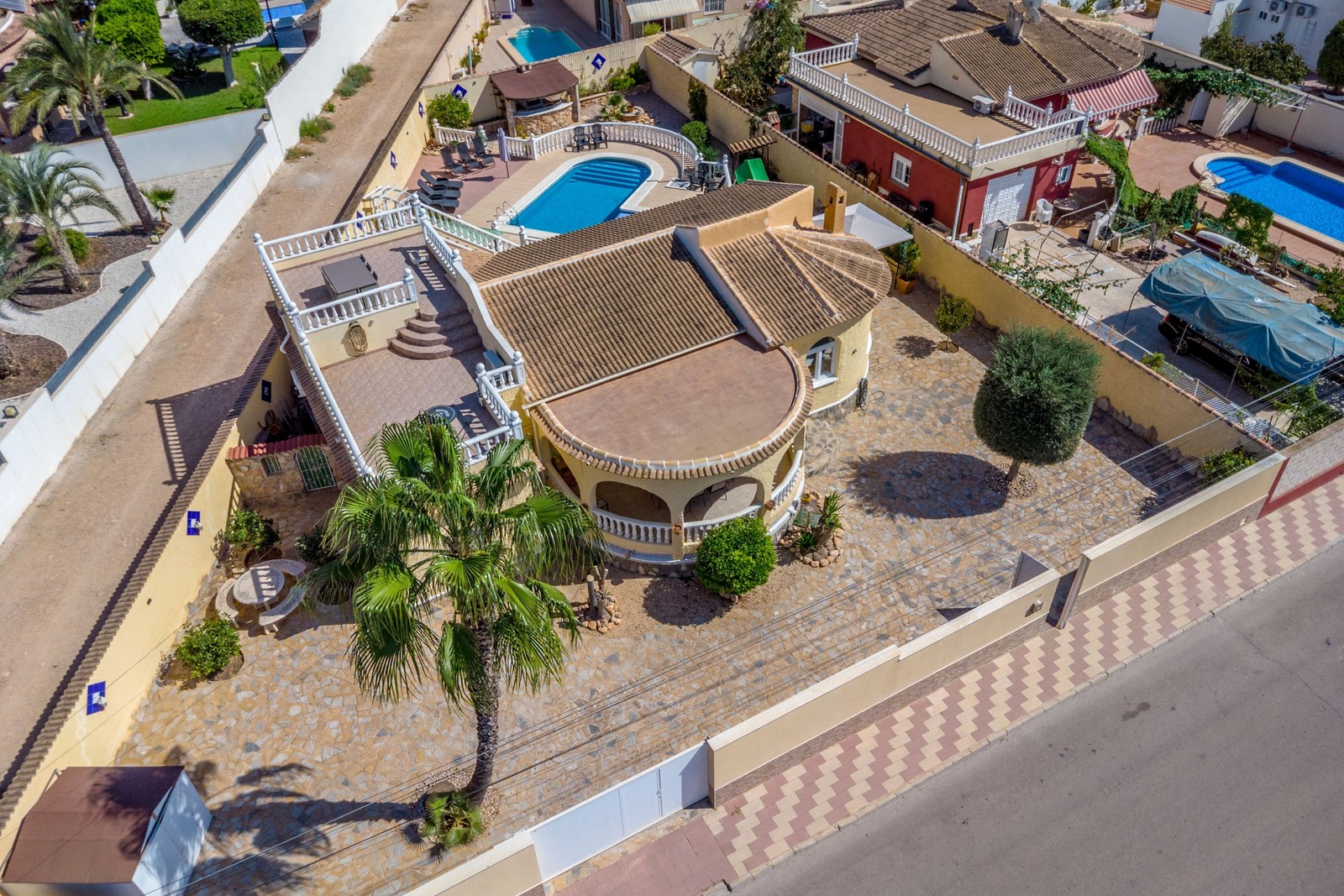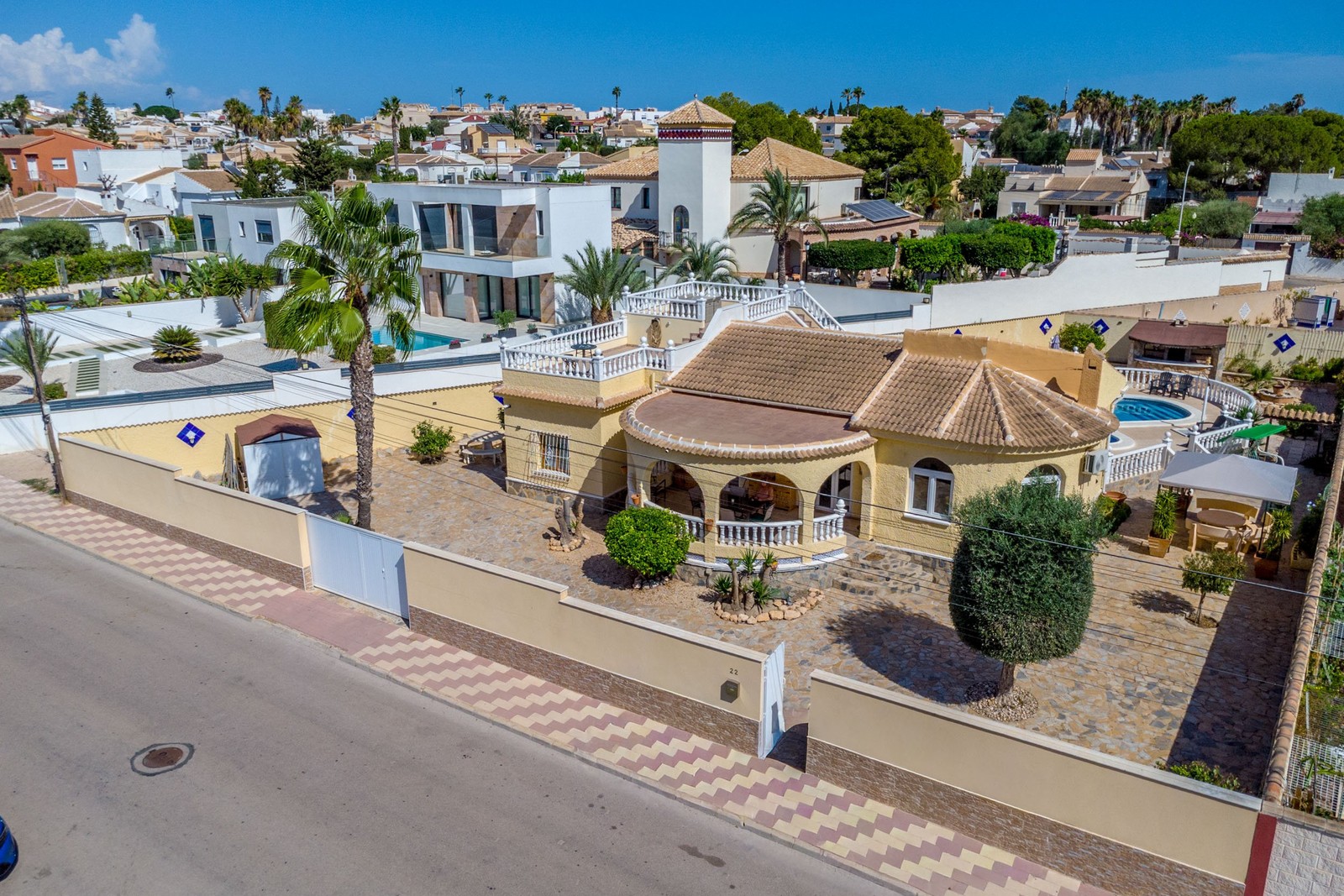 Välkommen till detta fantastiska hem i populära La Siesta – en bostad som verkligen har allt du kan önska dig för ett bekvämt och avslappnat liv under den spanska solen. På en generös hörntomt om hela 821 m² erbjuds en perfekt kombination av privatliv, trivsel och elegans.