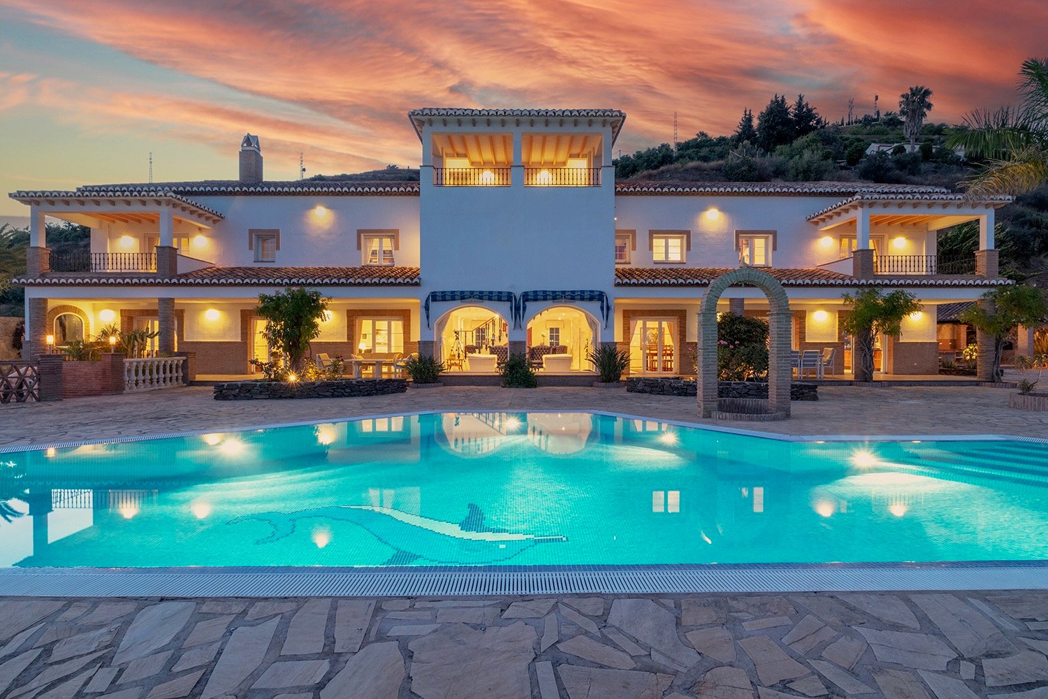 Välkommen till denna exceptionella villa, vackert inbäddad i de grönskande bergen strax utanför Nerja. Redan vid entrén möts du av ljusa, generösa ytor där marmorgolv och en elegant trappa sätter tonen för hemmet. En känsla av rymd och exklusivitet genomsyrar hela bostaden.