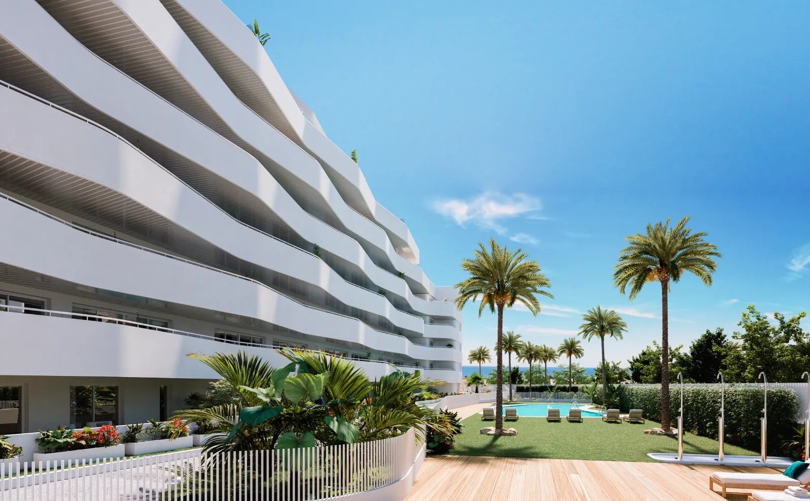 Här erbjuds lägenheter med två sovrum och två badrum, varav en ensuite, samtliga med parkeringsplats och förråd inkluderat. Aerotermiskt system för uppvärmning, kylning och varmvatten. Köken är fullt möblerade och vitvaror ingår.