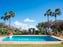Trädgården är som tagen ur en dröm med sin glittrande pool, lummiga palmer, doftande blommor och avokadoträd.