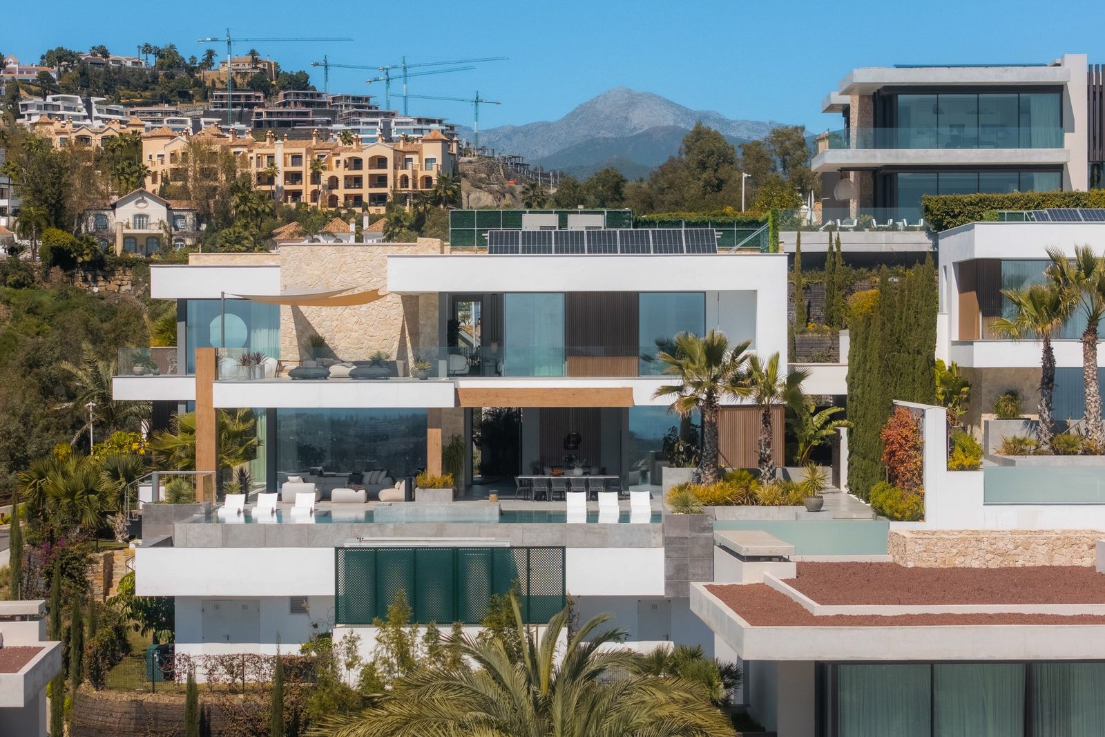 På kullarna i vackra La Quinta ligger denna magnifika villa. Med sina sex sovrum, privat pool, spa och panoramautsikt från Medelhavet till den afrikanska kusten erbjuder den ett extraordinär boendeupplevelse. Poolområdet har en utomhusbio, vilket skapar en magisk miljö för kvällarna under stjärnorna. Ett utomhuskök och matplats gör den perfekt för sociala sammankomster. Inuti kan du njuta av ett privat spa med inomhuspool, bastu, ångbad och massageavdelning, samt ett gym och underhållningsrum. En skräddarsydd klädkammare och lyxig mastersvit med havsutsikt fullbordar detta alldeles extraordinära hem.