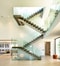Entrén med dubbla dörrar vetter mot en storslagen hall med dubbel takhöjd och en flytande trappa i loftstil som leder hela vägen upp till takterrassen.