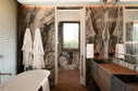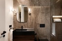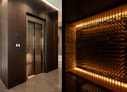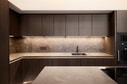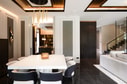 Fastigheten spänner över fyra nivåer och är designad för ett sömlöst boende. En dubbelhöjd entré leder till utrymmen i öppen planlösning med träaccentuerade tak. Siematic-köket är utrustat med Gaggenau-apparater och har skjutdörrar för anpassningsbar användning. Fönster från golv till tak ger interiören rikligt med naturligt ljus och öppnar mot den anlagda trädgården.