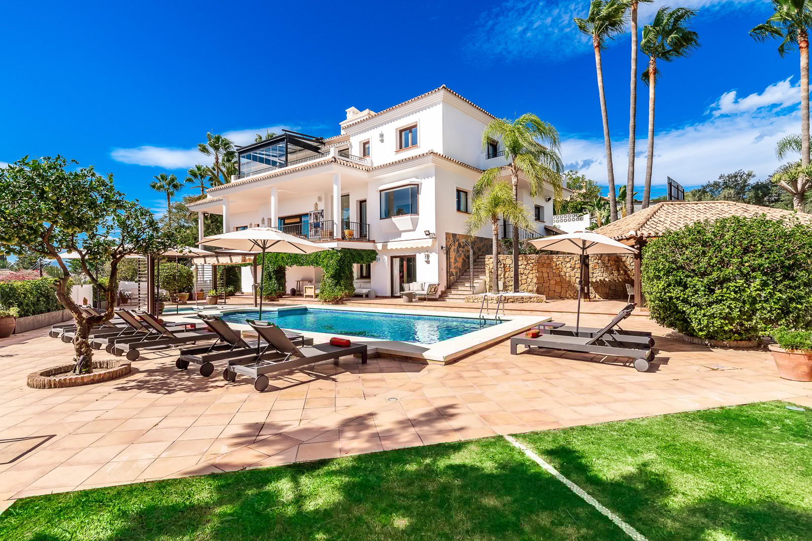 Denna exklusiva villa renoverades 2023 och ligger i ett av de mest eftertraktade bostadsområdena i Marbella. Med sex sovrum, åtta badrum och en expansiv tomt, erbjuder den högsta nivån av komfort och lyxigt boende, med hisnande utsikt över Medelhavet.