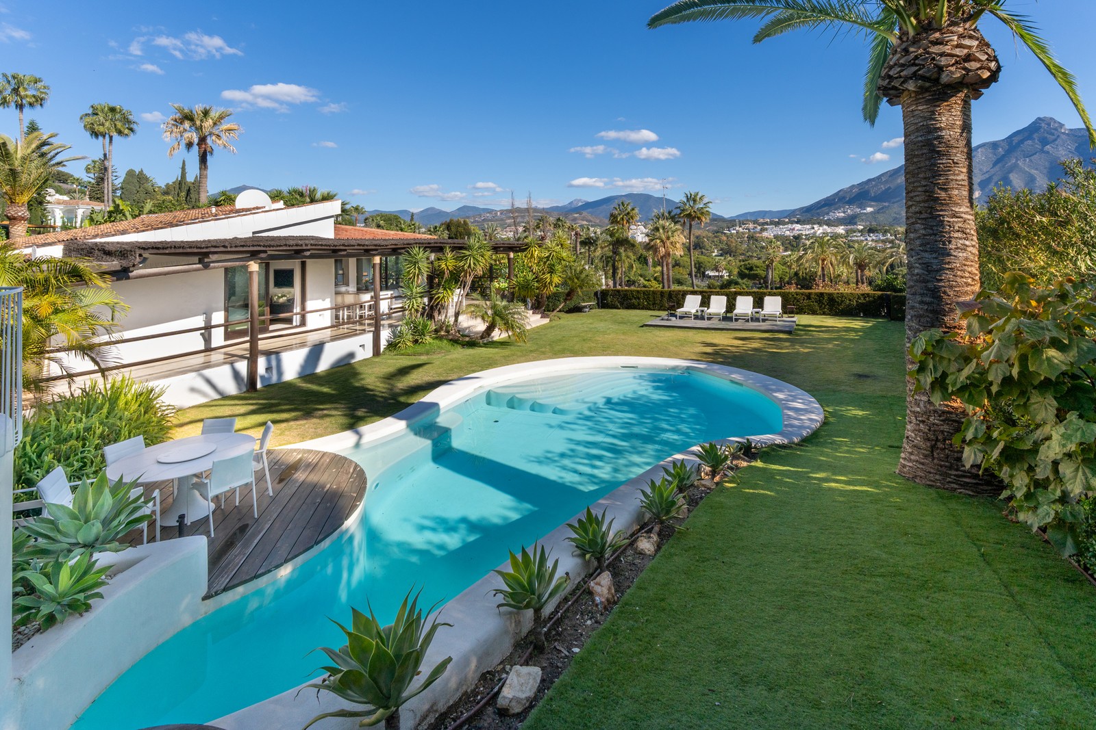 Upplev charmen i denna utsökta villa i balistil med 4 sovrum och 4 badrum, komplett med en separat gästlägenhet, inbäddat i hjärtat av Nueva Andalucia. Boendet ligger på en privat tomt och erbjuder fantastisk utsikt över det ikoniska berget La Concha. Villan är fullt möblerad och blandar modern elegans med en varm, inbjudande atmosfär.