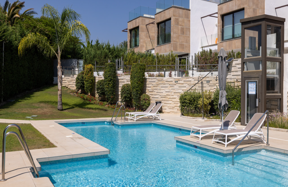 I hjärtat av Nueva Andalucia, bara minuter från Puerto Banús, ligger detta exklusiva radhus. Det är fördelat på fyra våningar och blandar modern design, och funktionalitet. Med sydostlig orientering badar huset i naturligt ljus hela dagen, vilket förstärker dess rymliga interiör och exceptionella komfort. På bottenvåningen öppnar sig ett generöst vardagsrum och matplats genom stora skjutdörrar till en privat terrass och anlagd trädgård, vilket skapar en sömlös koppling mellan inomhus och utomhus.