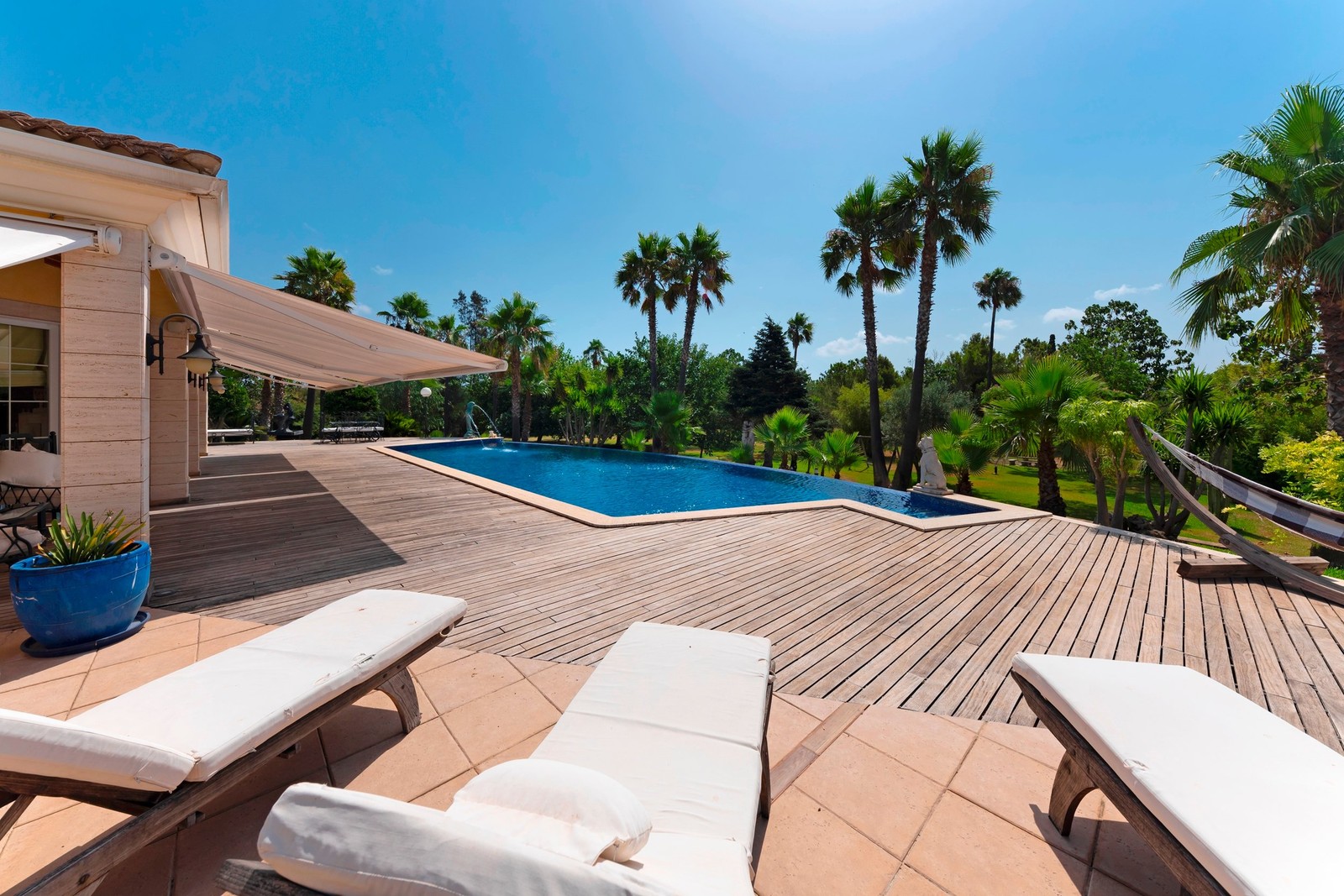 På den parkliknande tomten finns en damm, flera fontäner och två sjöar. Det finns ett flertal olika fruktträd, olivlundar, häststall, hönshus och byggnader för trädgårdsredskap. Här hittar vi även ett gästhus på nästan 200 kvm med hall med öppen spis , ett stort vardagsrum/matsal, kök samt en stor terrass med utekök. I detta hus finns även två tvättstugor, 2 sovrum och 2 badrum.
