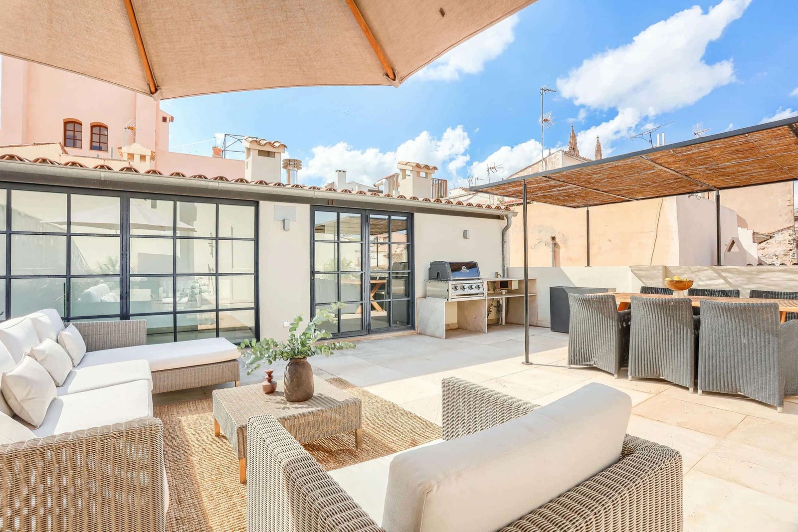 Casa Princesas terrass är en upplevelse i sig med utsikt över delar av Old Town. Ett extra vardagsrum, terrassen, där du känner ljuset, själen och atmosfären av staden. Hit når solen under stora delar av dagen. Här hittar du plats för utomhusköket med grill och diskbänk. Plats för middagar, solsängar, jacuzzi och solterrass för dag och natt upplevelser. Terrassen är delvis dekorerad med vackra och moderna detaljer med nära relation till husets historia. Detta accentueras ytterligare av det mönstrade stengolvet av ljuskalksten.