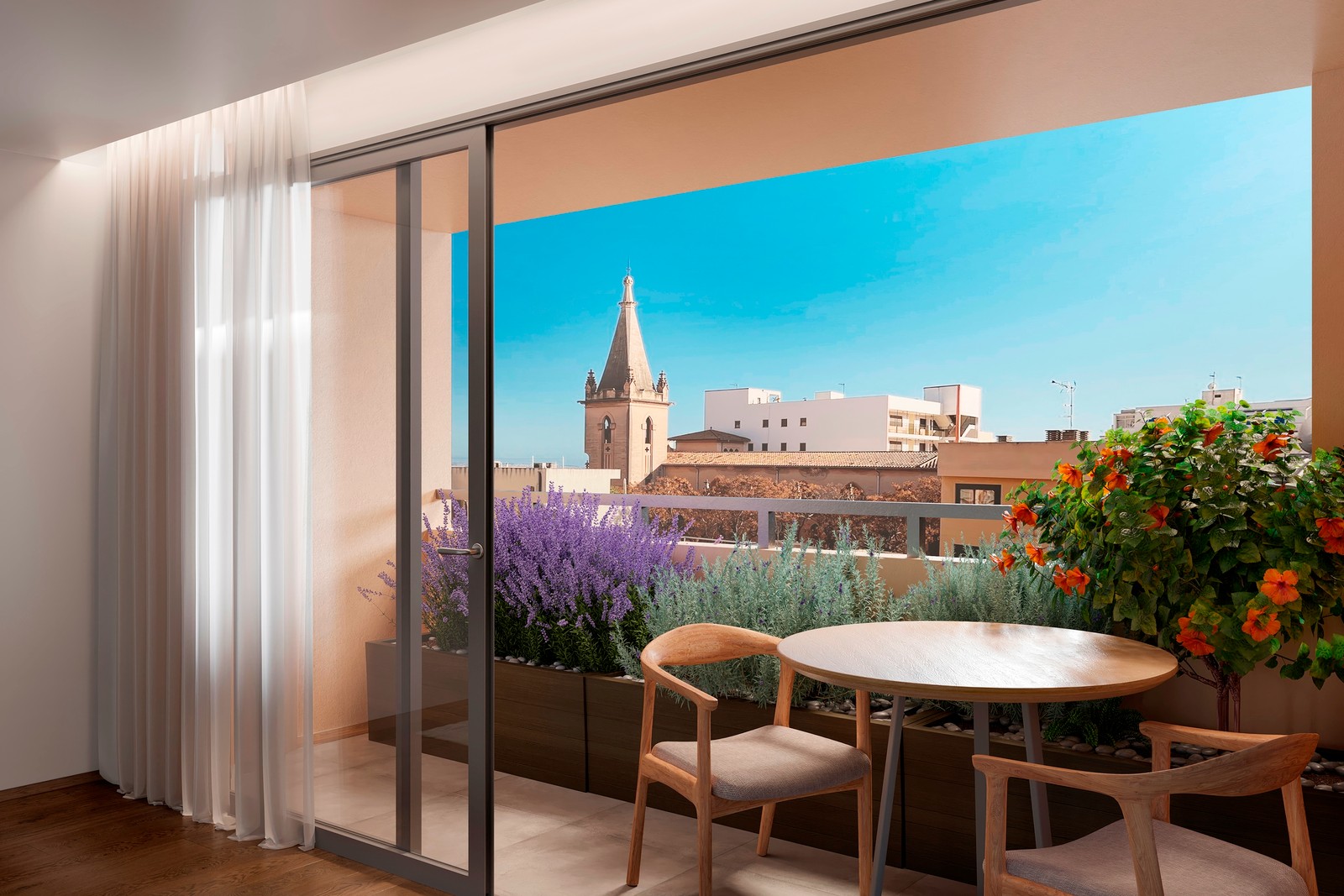 Lägenheten på 132 m2 är belägen på tredje våningen med utsikt mot kyrkan El Verge del Carme. I den pågående renovationen har man uppdaterat och förbättrat allt från VVS, fönster, väggar med både ljudisolering liksom termisk isolering som behåller en behaglig temperatur i bostaden både under sommar och vinter. Resultatet av renoveringen är en modern och mysig lägenhet med en varm skandinavisk stil i beige, gråa och vita toner. Det finns 3 sovrum varav master bedroom har en härlig walk-in closet, 2 badrum, ett stort vardagsrum med öppen planlösning mot det fullt utrustade köket med vitvaror från Bosch och med en köksö. Från vardagsrummet når man terrassen på ungefär 8 m2 med utsikt mot kyrkan och många soltimmar tack vare det tacksamma söderläget.