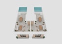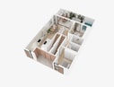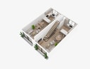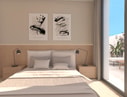 Enhet 3; Två sovrum. Byggyta: 104,4 kvm, Terrass: 31,3 kvm, Pool: 7,6 kvm. 970.000€