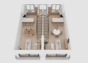 Enhet 2; Tre sovrum. Byggyta: 114 kvm, Terrass: 30,6 kvm, Pool: 7,3 kvm. 1.055.000€