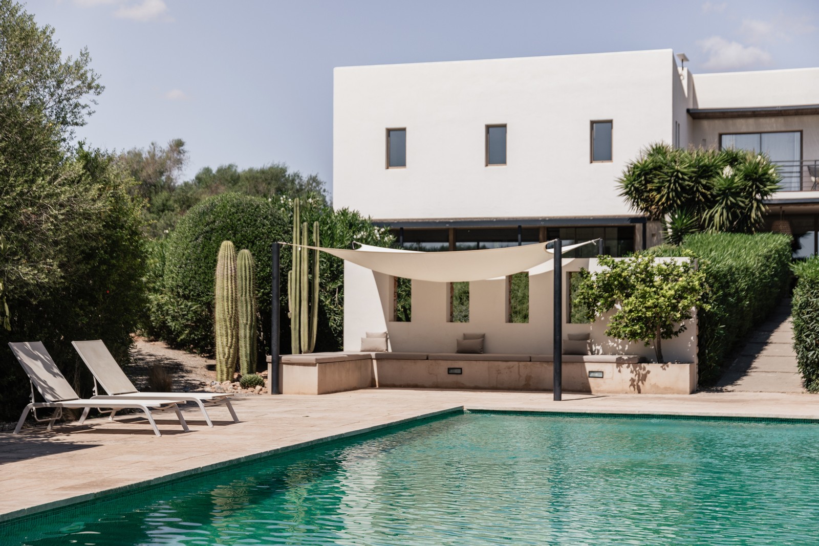 Trädgårdarna på Finca Maris är en magisk upplevelse, där lummigt gräs, robusta kaktusar och elegant småsten skapar en harmonisk och lugn miljö. Landskapet erbjuder allt från skuggiga lounger till soliga, öppna områden, vilket inbjuder till personlig reflektion eller sociala event. I hjärtat av Finca Maris ligger en fantastisk pool på 80 m². Denna inbjudande oas är inramad av ett frodigt utbud av medelhavsväxter, inklusive doftande fikonträd, höga palmer och livfulla citrusträd, vilket skapar ett avskilt paradis som lockar till lugn och rekreation. En utomhusdusch är bekvämt placerad för en snabb nedkylning under bar himmel, vilket förstärker känslan av att vara ett med naturen.