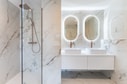 Nedre våningen är dedikerad till vila och avkoppling, med två eleganta sovrum med badrum en suite och stilfulla inbyggda garderober. Denna våning öppnar också upp till en rymlig terrass, med utsikt över de grönskande omgivningarna.