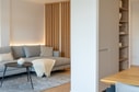 Bostaden har nyligen genomgått en totalrenovering där varje detalj har noggrant valts ut för att skapa en atmosfär av harmoni och förfinad elegans.