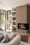 På samma plan ligger det stora vardagsrummet som badar i ljus med en öppen spis och som angränsar till det högkvalitativa köket med matplats. Köket är utrustat med vitvaror från prestigemärken som Miele och Gaggenau. Det bästa med det här köket är att det även har ett extra litet grovkök med gott om förvaringsutrymme. Härifrån har vi tillgång till de täckta och öppna terrasserna där du kan dela stunder av gemytlighet med din familj och dina vänner.