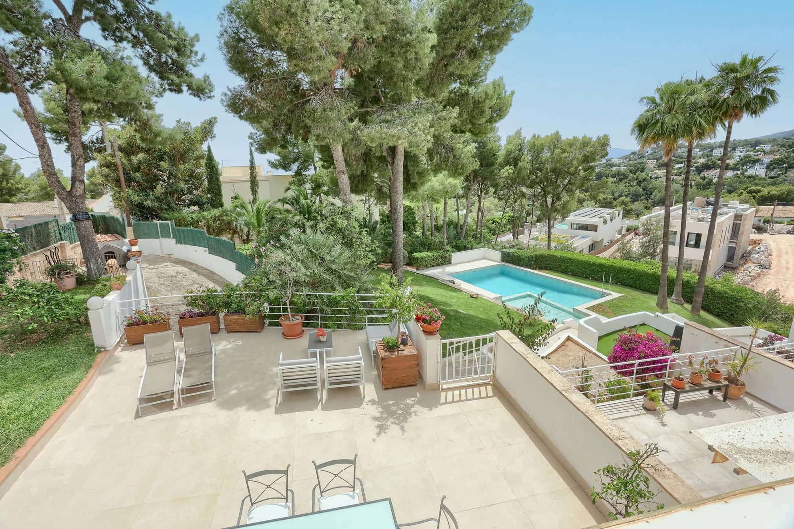 Townhouse i Portals Nous med stor terrass, pool och havsutsikt