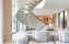 Entréplanet är en bred social scen där vardagsrum, kök och matsal smälter samman i ett öppet flöde. Den sydvästliga orienteringen ger ett fantastiskt ljusinsläpp och skapar en sömlös övergång mellan inomhuskomfort och utomhusliv. En skulptural spiraltrappa binder samman våningarna och kompletteras av en elegant hiss – en detalj som förhöjer både funktion och estetik.