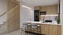 Bottenvåningen erbjuder ett rymligt vardagsrum med kök i öppen planlösning, ett rymligt sovrum med inbyggd garderob och ett badrum. Både vardagsrummet och sovrummet har tillgång till trädgården och poolen.