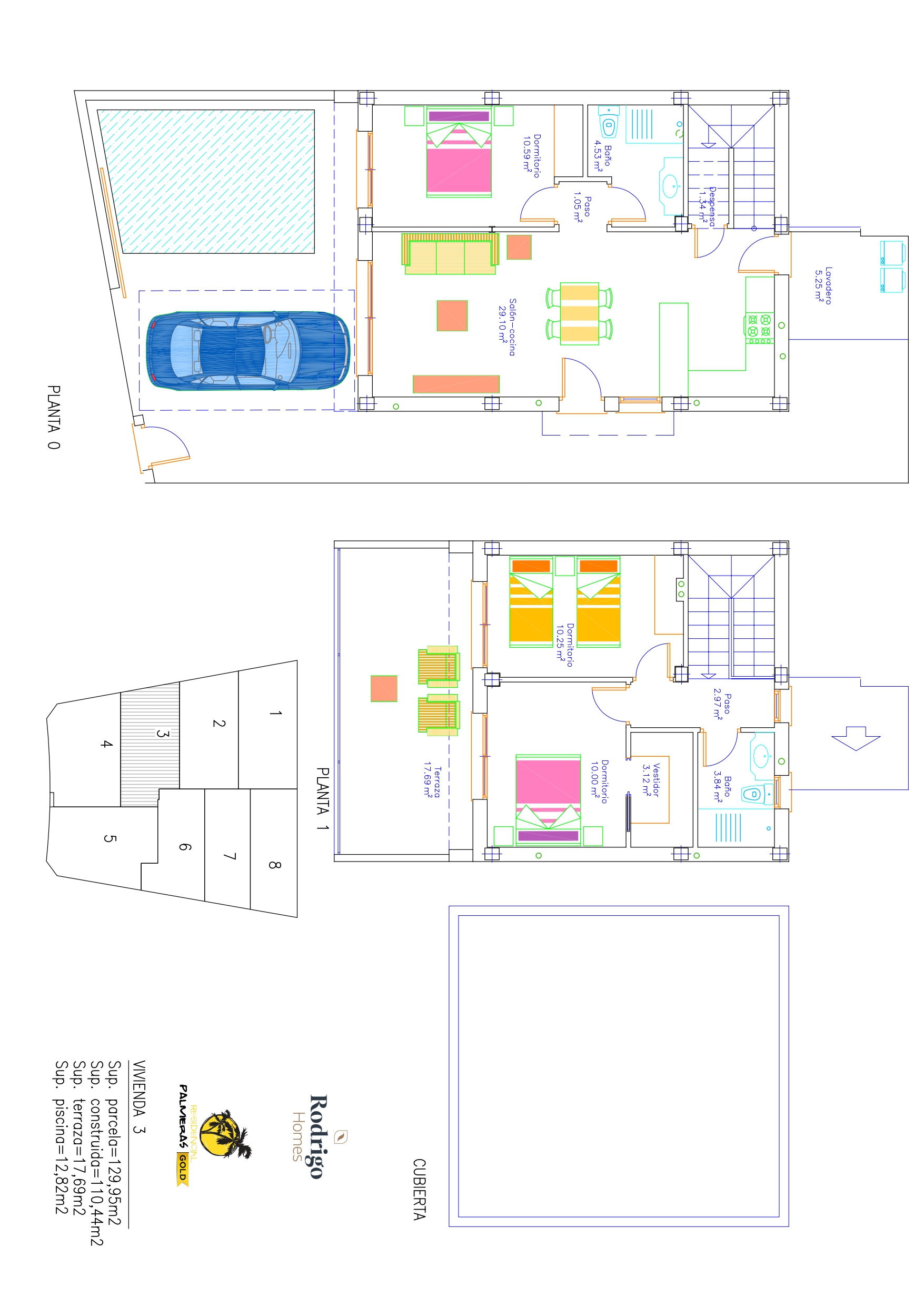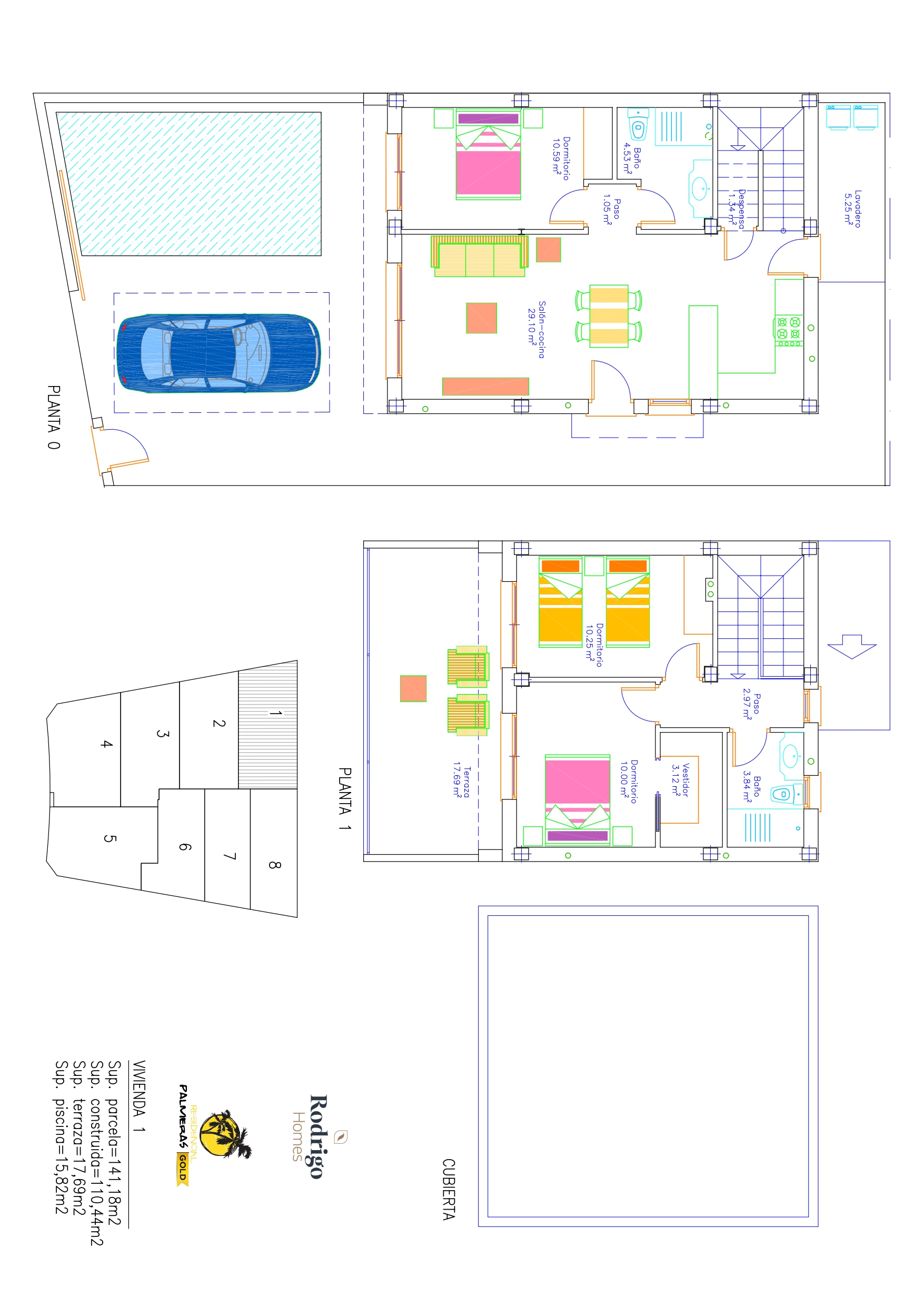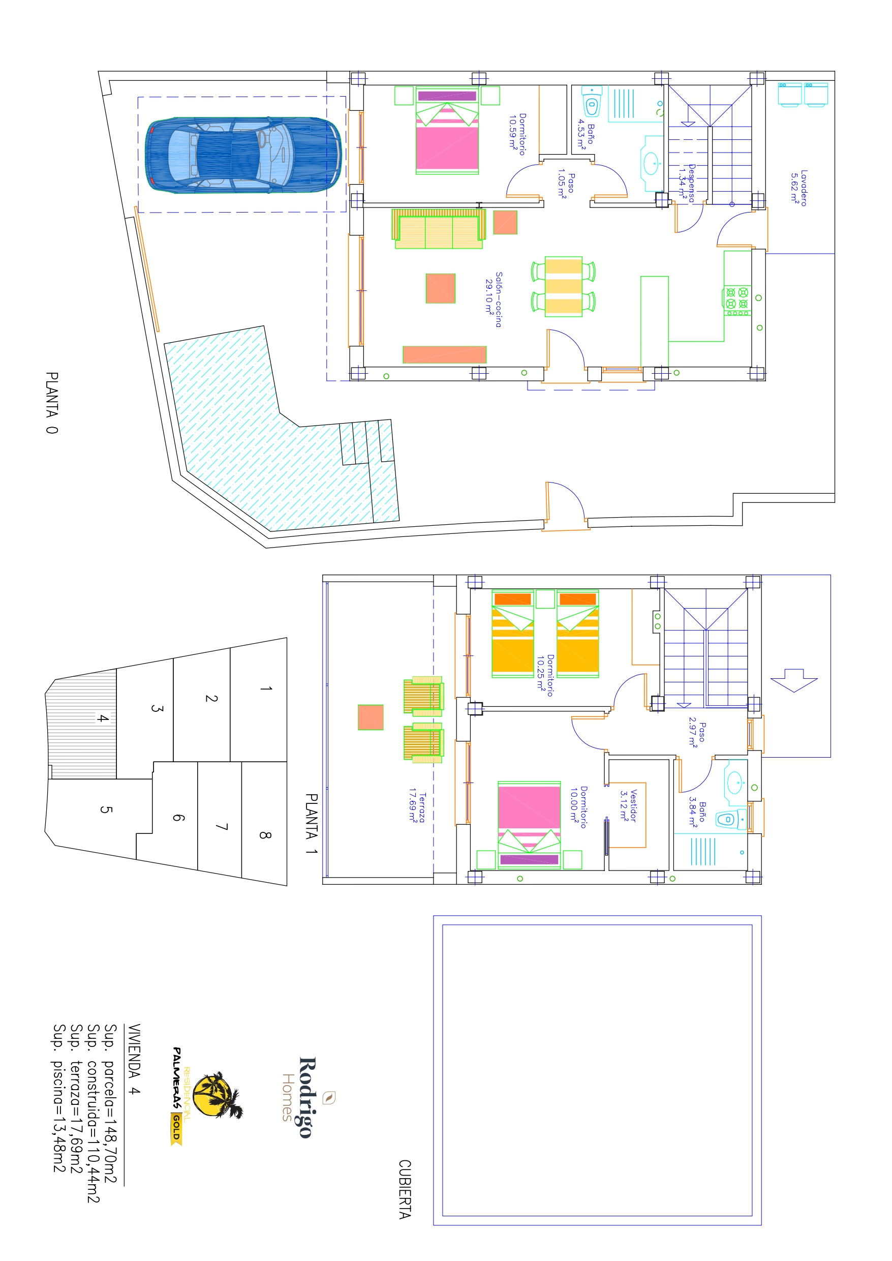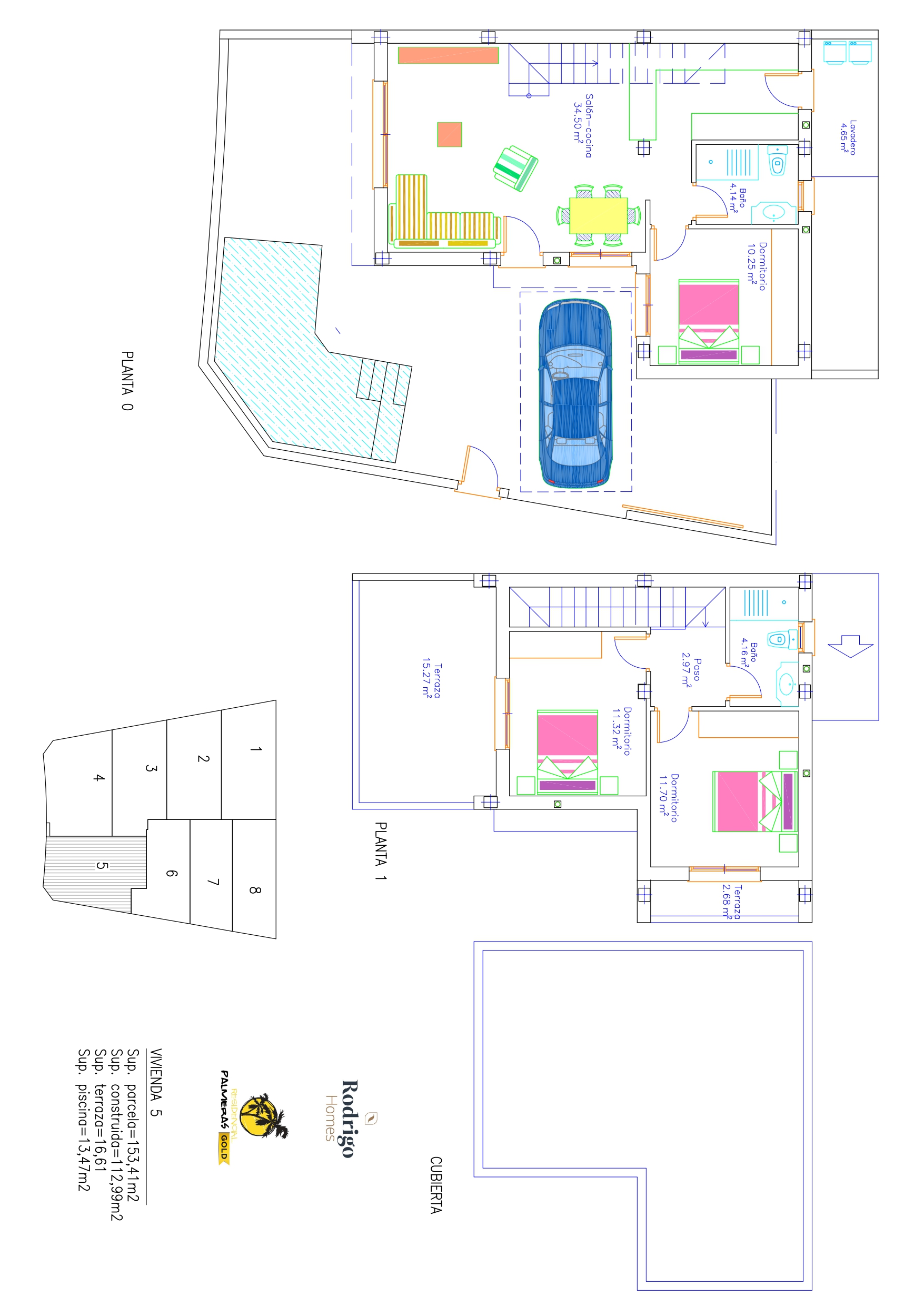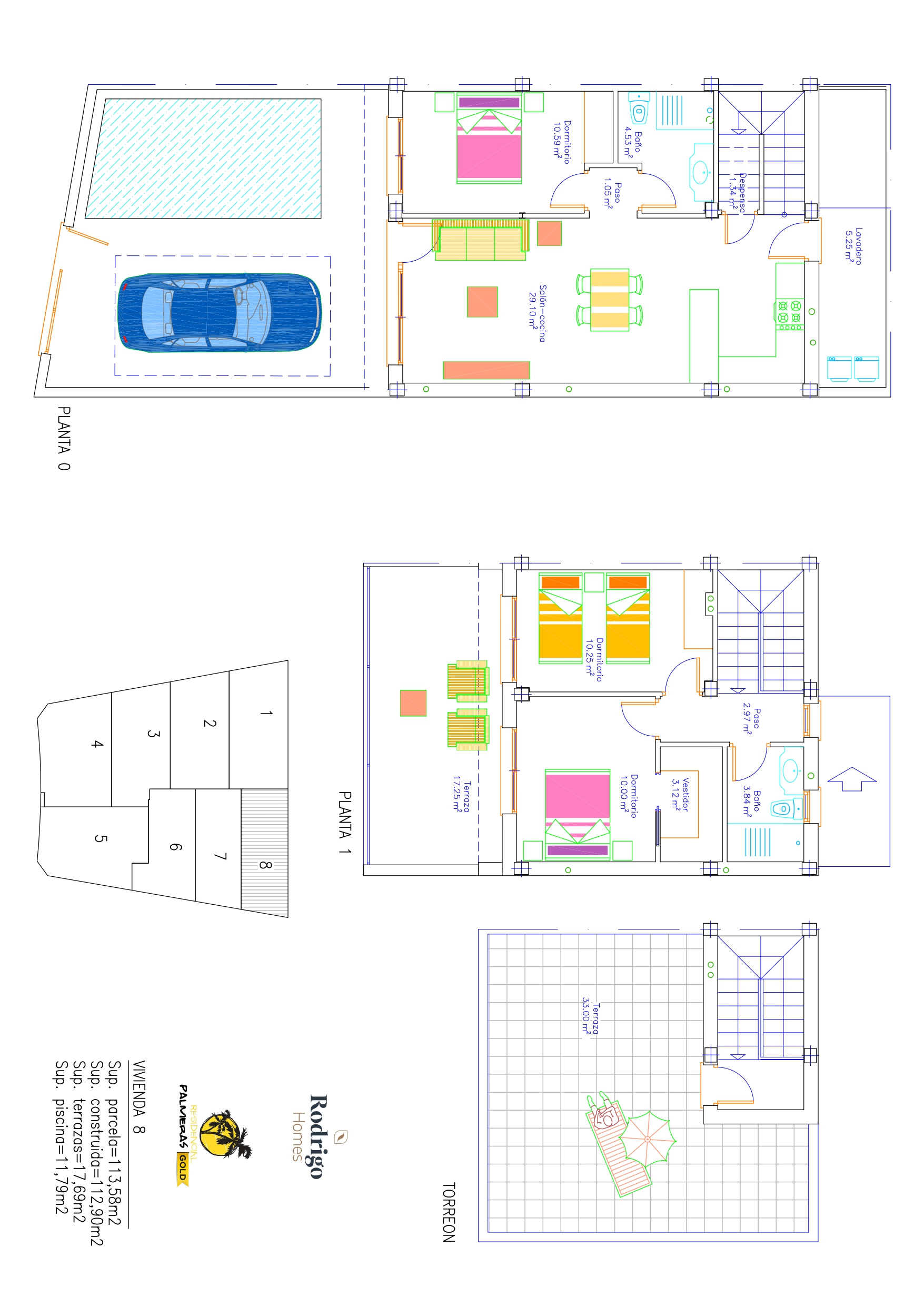 Några av villorna har inkluderat en stor takterrass medan de andra har det som tillval om så önskas. De levereras med förinstallerad A/C genom kanaler med Airzone-system på varje våningsplan, LED-belysningspaket, värme och duschskärmar i badrum, privat pool med förinstallation för värmemaskin, Balay vitvaror och parkeringsplats på tomten .