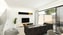 Bottenvåningen består av ett ljust vardagsrum med kök i öppen planlösning, ett sovrum med dubbelsäng med inbyggd garderob och ett badrum. Från vardagsrummet har du direkt tillgång till terrassen och poolen.
