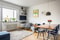 Ljust och trivsamt vardagsrum med ett stort fönsterparti som släpper in rikligt med dagsljus. Rummet erbjuder gott om plats för både soffgrupp och matbord eller annan möblering efter önskemål. Från vardagsrummet når du ut till bostadens balkong. Härifrån har du utsikt över den lugna omgivningen och ett härligt ljusinsläpp tack vare det höga läget.
